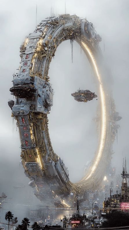 一个巨大的轨道环环绕着一颗淡蓝色的行星,它的内表面排列着悬浮在人造重力下的巨型城市。数千个闪闪发光的运输舱沿着发光的轨道滑行,穿过透明合金和生物发光植物的塔。在远处,一个戴森群在遥远的太阳周围闪烁,通过等离子管道将能量输送到环的核心。一队半有机半合成的生命飞船静静地在星云的薄雾中漂流,它们的外壳发出神经光的脉冲。在下面的星球上,广阔的海洋闪烁着工程浮游生物的光芒,大陆被划分为几何形状的生物带--玻璃丛林、液态金属沙漠、纳米风暴雕刻的山脉。量子电梯刺穿平流层,大气层上出现极光涟漪。超现实、超细节、电影般的灯光、32 k分辨率、体积云、神射线、镜头耀斑、景深、虚幻引擎、杰作、令人惊叹的比例。